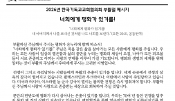 - [2026년 한국기독교부활절맞이-사순4주]한국기독교교회협의회(NCCK, 총무 박승렬) 화해와통일위원회(위원장 김현호)는 매해 부활절을 맞아 한반도의 평화를 염원하는 공동기도문을 발표해 왔습니다. 오늘 우리는 여전히 정전 상태가 지속되는 한반도의 현실 속에서, 멈춰선 대화와 깊어진 불신, 계속되는