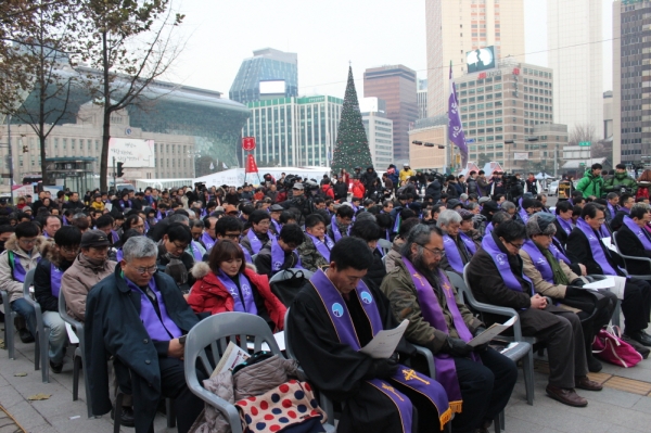 바로 선 종교는 항상 민중들과 함께 했고, 곧 그것은 정의와 평화를 외치는 민중들의 소리였습니다. 그것은 보수, 진보의 구분을 넘어서 인간의 본래 마음에서 나오는 소리이고, 예수가 그랬던 것처럼 오늘 우리 시대의 한국 교회도 거듭나서 다시 그 소리의 대변자가 될 것입니다. 그럴 경우 어떤 현실의 권력도 그것을 이길 수 없고 잠재울 수 없다는 것을 분명히 인정하길 바랍니다. 우리는 과거 민주화를 이루어가는 과정 속에서 민중들의 힘을 보았고, 그 힘은 바로 정의와 평화를 향한 올곧은 신앙에서 나왔음을 고백합니다. 일시적으로 지는 것 같으나 마침내 승리하는 것은 언제나 민중이었고 그들 편에 선 종교였다는 것을 우리의 민주화 역사가 증언하고 있기 때문입니다.