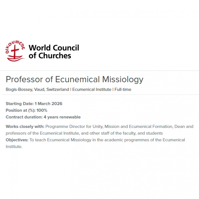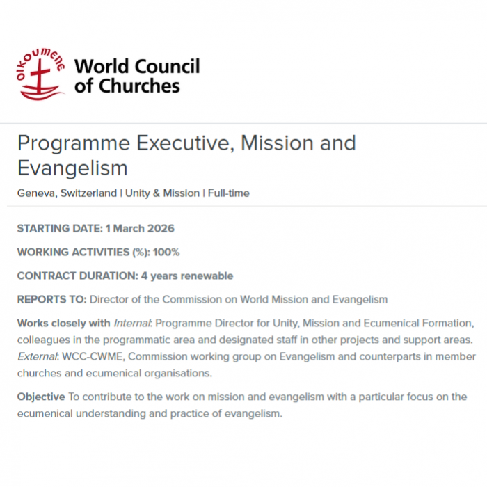 1. 세계선교와전도위원회(CWME) 프로그램 실무책임자 채용 공고