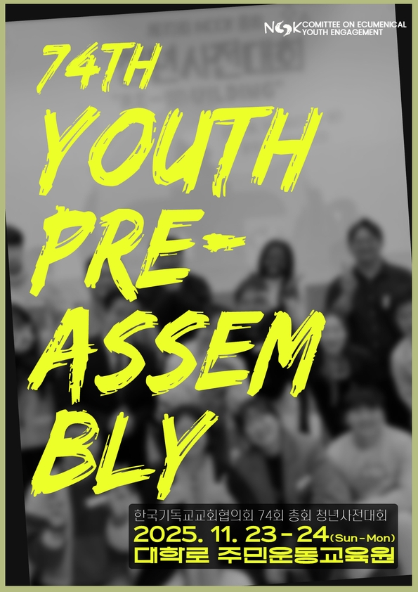74차 NCCK 정기총회 청년사전대회는 이 소명을 이미 살아내고 있는 청년들, 그리고 앞으로 감당하게 될 청년들이 함께 만나고 서로를 발견하는 자리입니다. 큰 이야기 안에서 이미 서로 연결되어 있음을 확인하고, 앞으로 어떤 과제를 함께 풀어가야 할지, 우리의 신앙을 어떻게 이어갈지를 함께 살펴보게 될 것입니다.