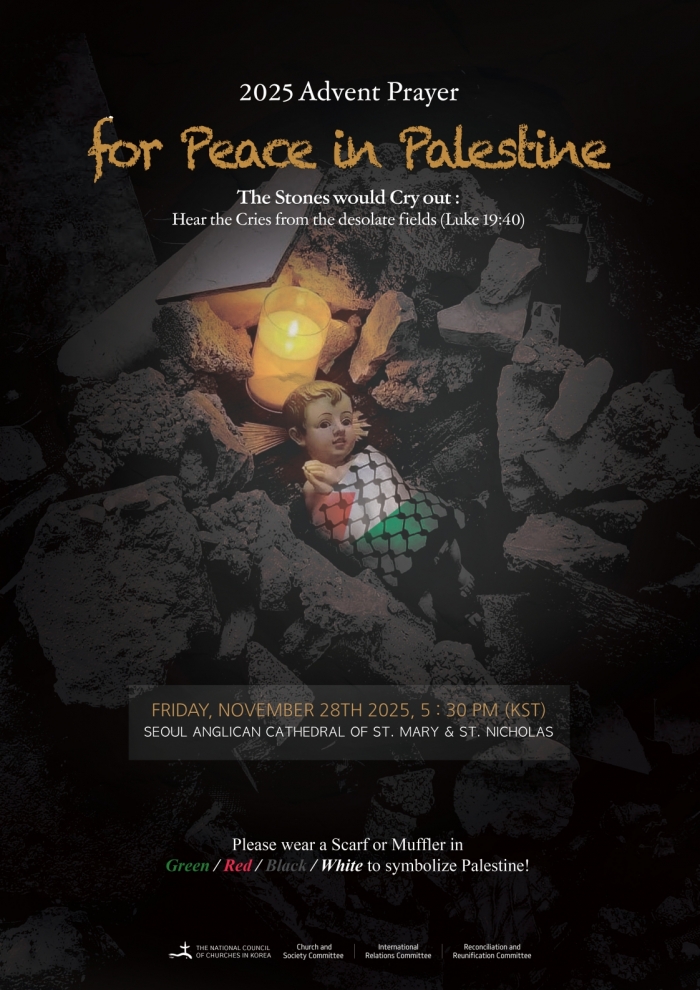 교회협 언론 2025 - 83호 (2025. 11. 21.) 수 신: 각 언론사 발 신: 한국기독교교회협의회(NCCK) 제 목: 「2025 팔레스타인 평화를 위한 대림절 기도회」 취재 및 보도 요청의 건 |