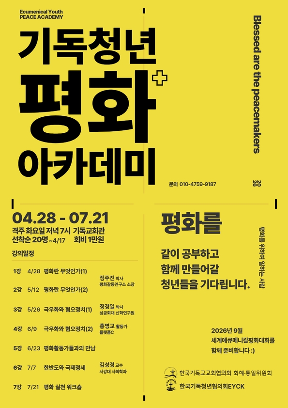 아카데미를 통해 우리는 평화를 단순한 개념이 아닌 신앙과 삶의 중요한 가치로 다시 세워가며, '2026년 세계 에큐메니칼 평화대회'를 함께 준비해 나가고자 합니다.