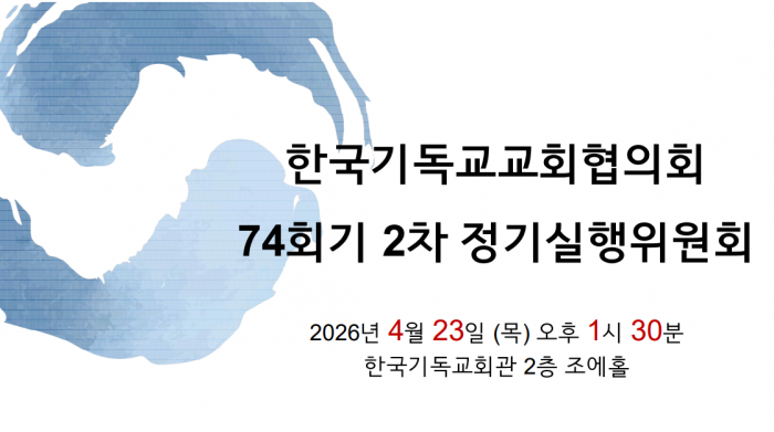 한국기독교교회협의회(NCCK) 한국기독교교회협의회(NCCK, 회장 정훈 총회장, 총무 박승렬 목사) 74회기 2차 정기실행위원회가 2026년 4월 24일(목) 오후 1시 30분, 한국기독교회관 2층 조에홀에서 열렸습니다.